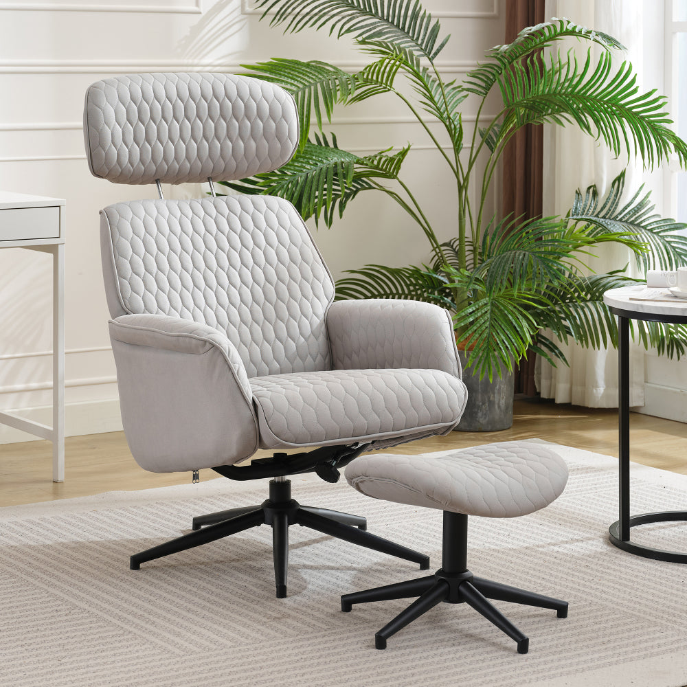 Sillón Reclinable Gris 360° Giratorio | Reposapiés | Oficina y Hogar