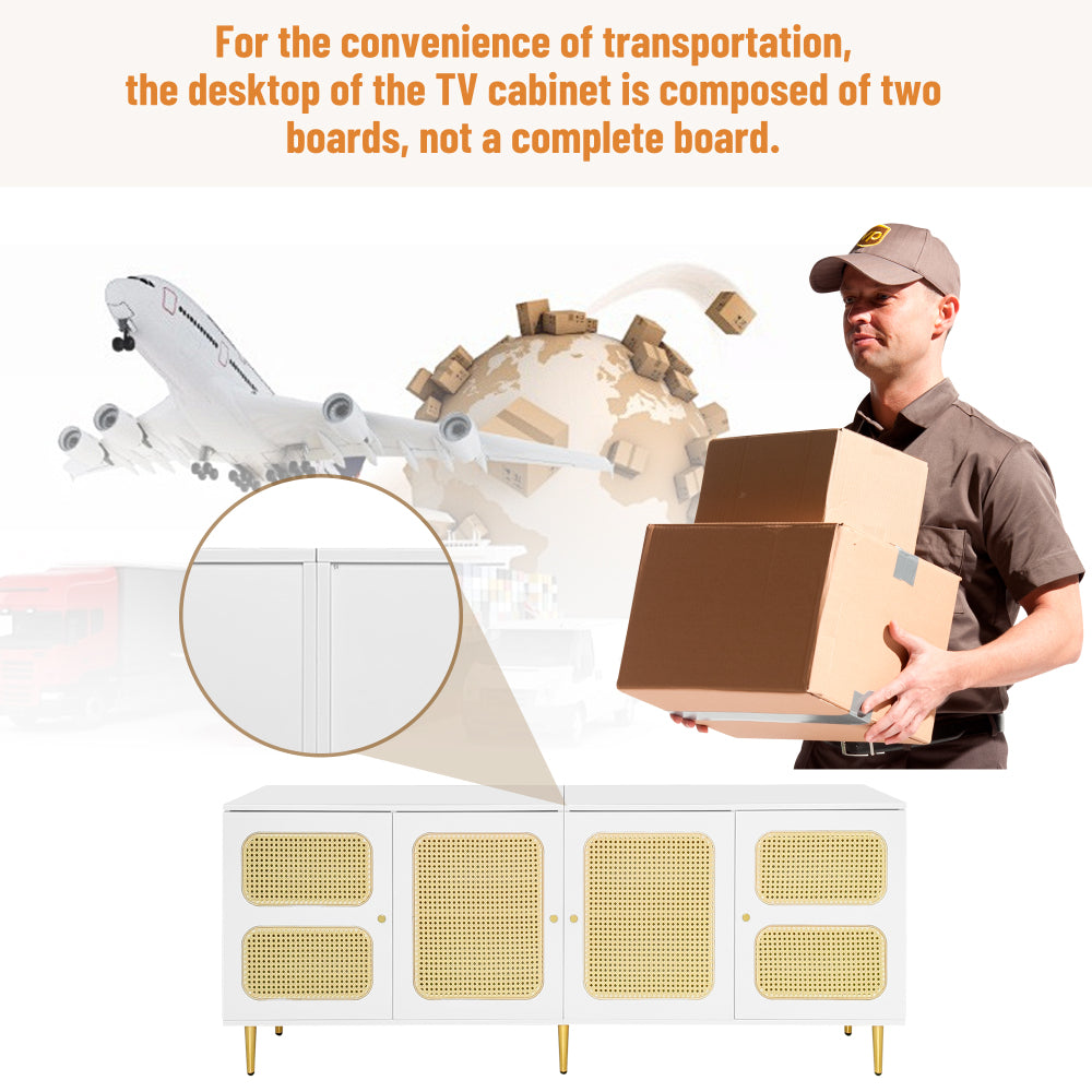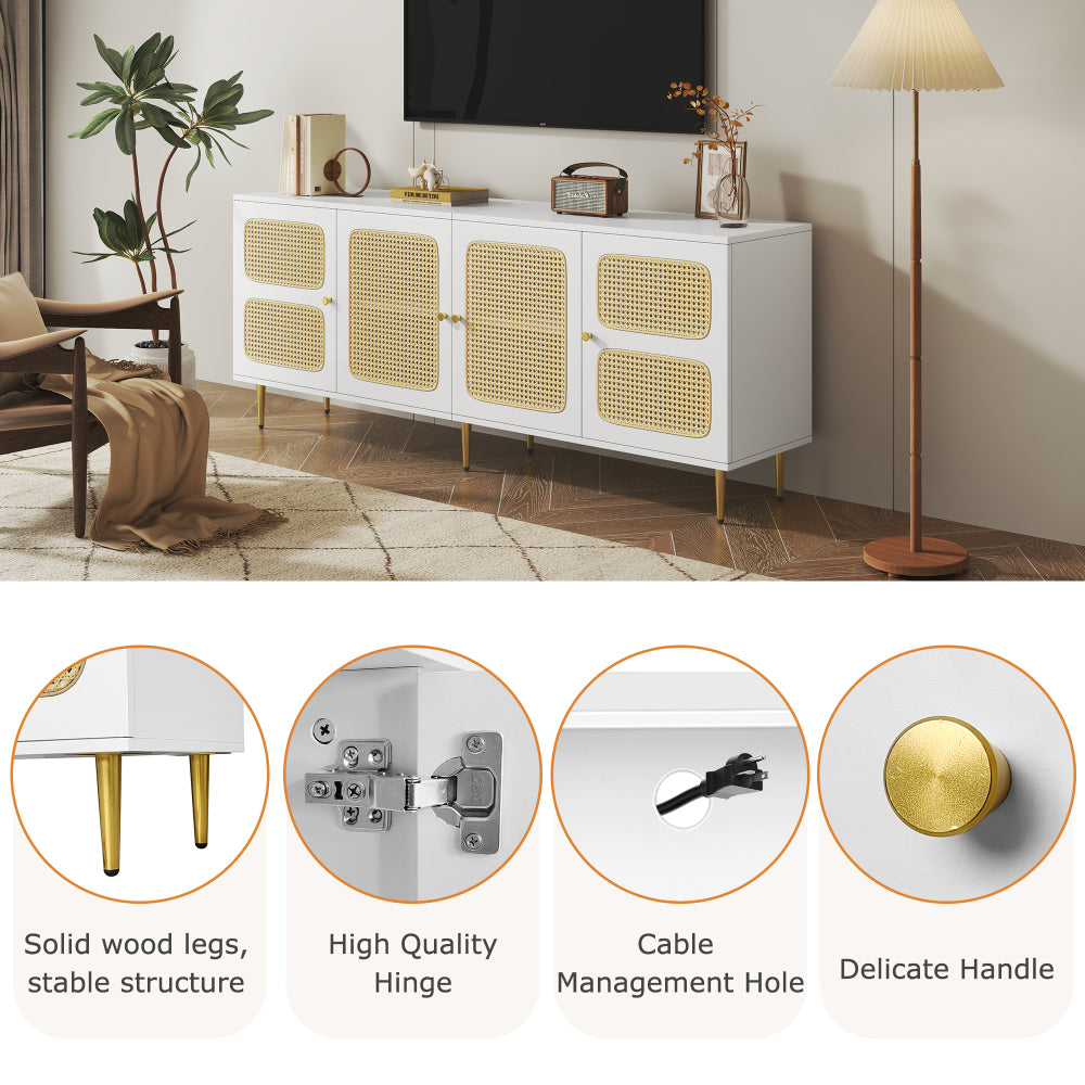 Apparecchio TV Ratán Bianco 180 cm | 4 Puertas, Soporte TV 80 Pulgadas