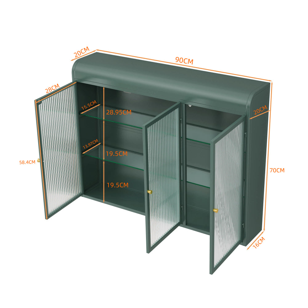 Vitrinas de vidrio arqueadas de 3 puertas para cocina, sala y baño (verde oscuro)