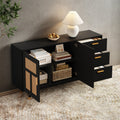 - 【Función de almacenamiento】Cuenta con un amplio compartimento interior con amplios estantes tras dos puertas de ratán. En el lado derecho del aparato, también hay tres cajones de gran capacidad para satisfacer tus necesidades de almacenamiento diario.