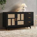 - 【Estilo hogareño】Los colores negro y natural y las puertas con detalles de ratán le dan a la unidad de almacenamiento un hermoso aspecto rústico que complementa la decoración de su hogar.