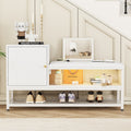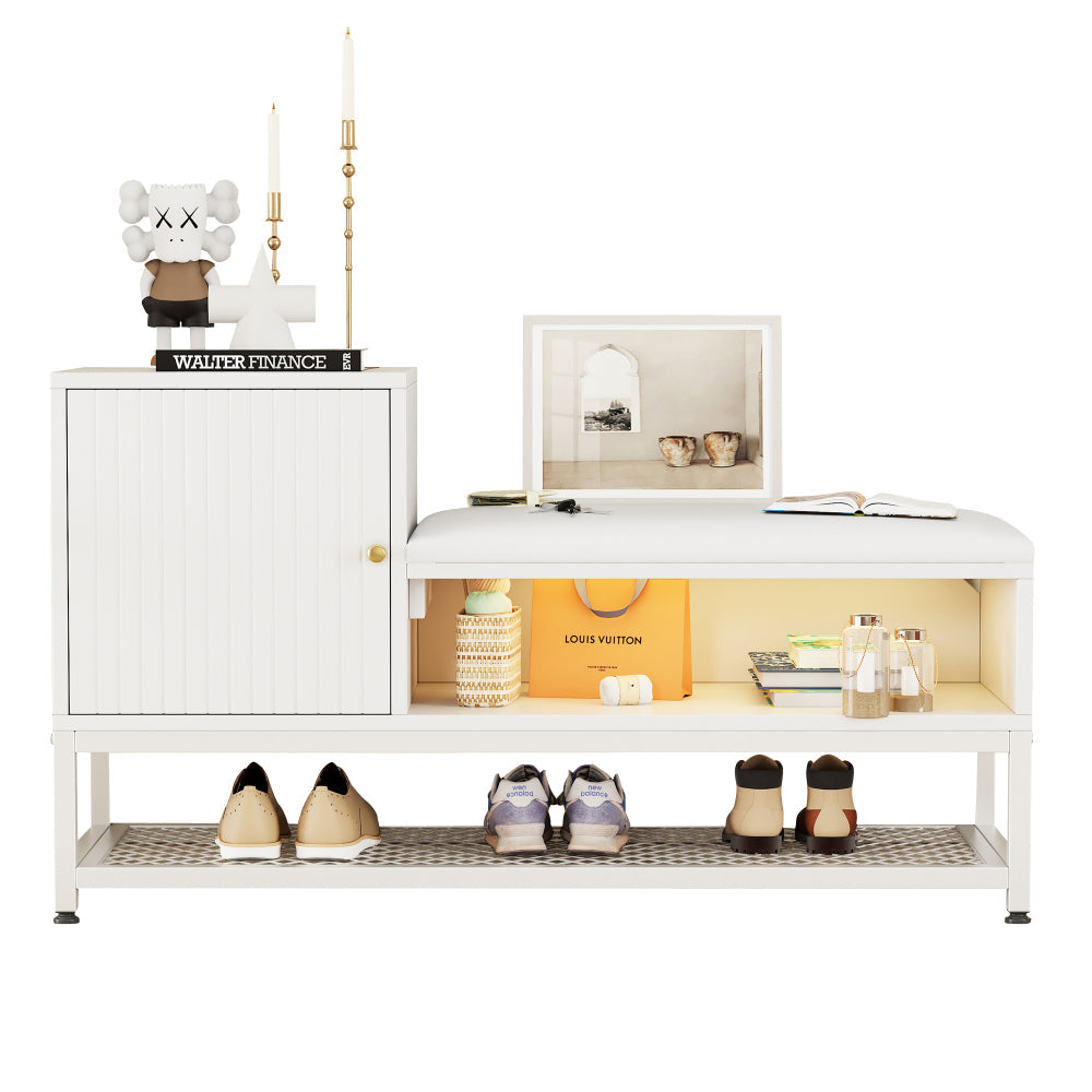 - Nuestro zapatero blanco para la zona de entrada está equipado con una tira de luz LED RGB inteligente que ofrece más de 16 colores y 4 modos de parpadeo.