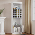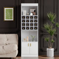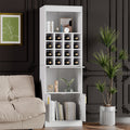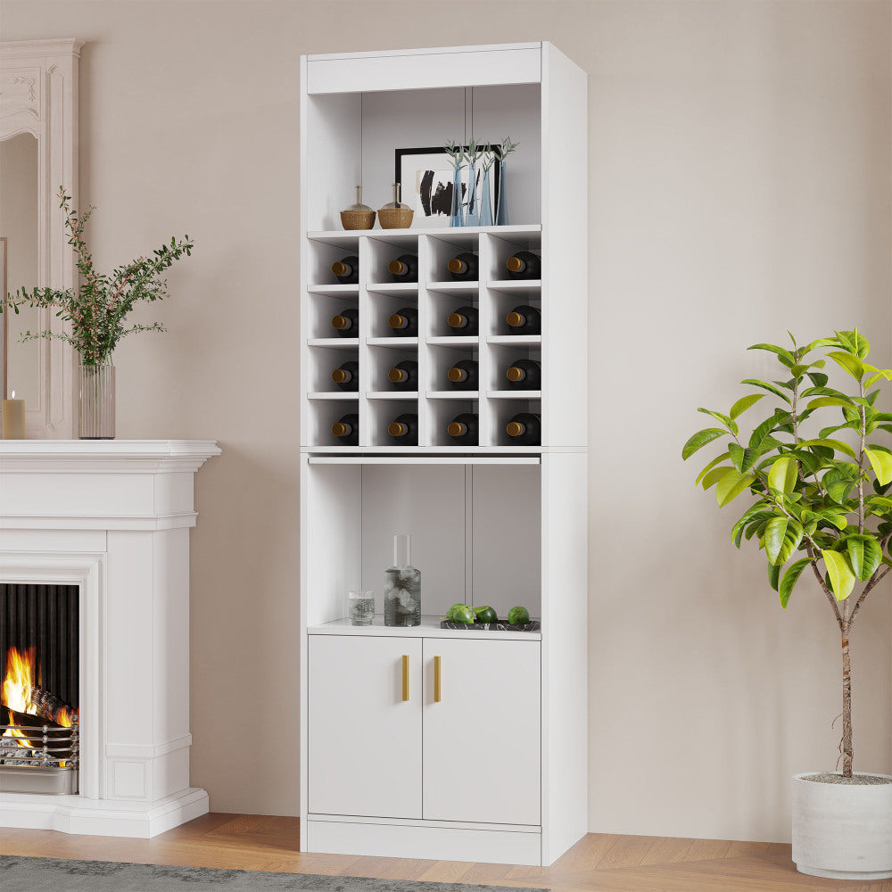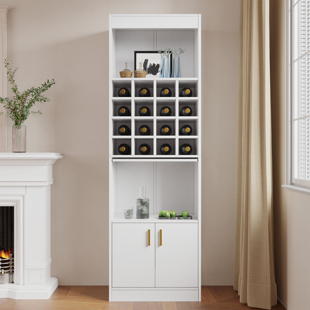- Amplio espacio de almacenamiento: Armario independiente blanco con estantes abiertos en la parte superior, 16 botelleros en el centro y un compartimento en la parte inferior para una organización óptima de su colección de vinos.