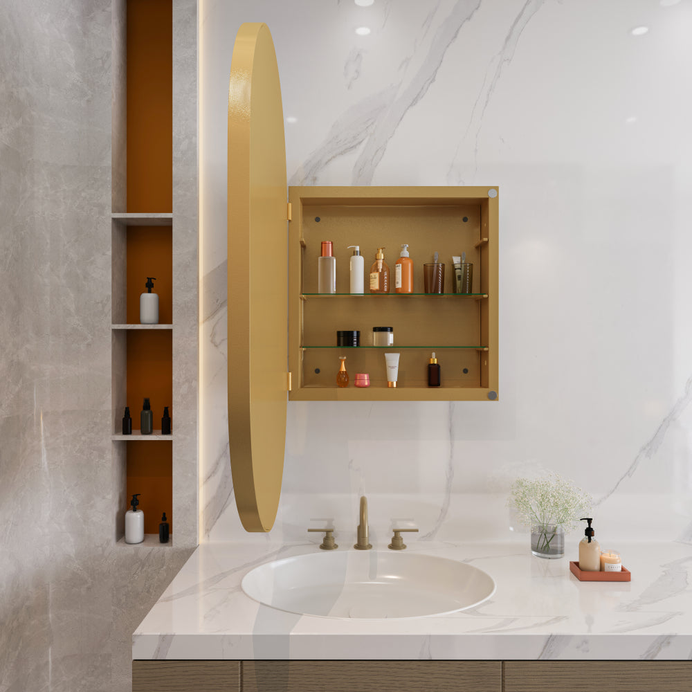 Armario con Espejo Ovalado Dorado Empotrado | Estantes Ajustables
