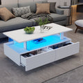 - Robusta y elegante: Con su generoso tamaño y su base rectangular bien diseñada, nuestra mesa de centro LED blanca no solo es elegante, sino también estable. Olvídate de las mesas inestables; Nuestro moderno diseño garantiza la estabilidad. Se integra perfectamente en cualquier sala de estar y cuenta con un estante abierto para almacenamiento adicional. Los cajones dobles facilitan la organización de tus objetos cotidianos.
